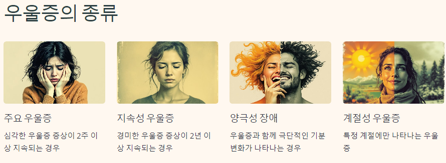 - 계절성 우울증 : 특정 계절에만 나타나는 우울증입니다.