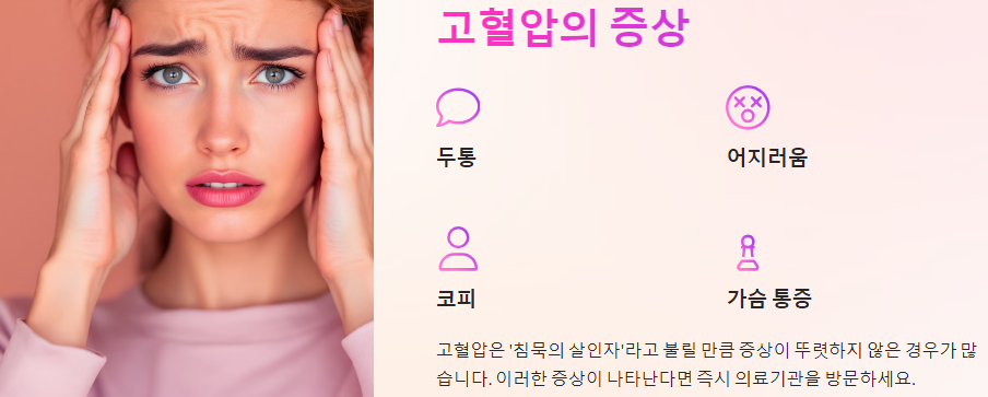 고혈압은 '침묵의 살인자'라고 불릴 만큼 증상이 뚜렷하지 않은 경우가 많습니다. 그러나 일부 환자들은 두통, 어지러움, 코피, 가슴 통증 등의 증상을 경험할 수 있습니다. 이러한 증상이 나타난다면 즉시 의료기관을 방문하여 혈압을 측정하는 것이 중요합니다.