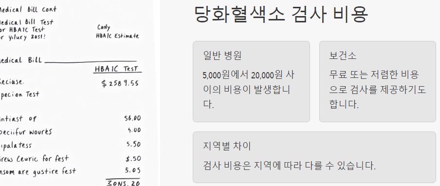 당화혈색소 검사의 비용은 병원이나 검사 기관에 따라 다소 차이가 있지만, 일반적으로 5,000원에서 20,000원 사이입니다. 보건소에서는 무료 또는 저렴한 비용으로 검사를 제공하기도 하며, 지역에 따라 다를 수 있습니다. 아래 이미지는 검사 비용에 대한 정보를 제공합니다.