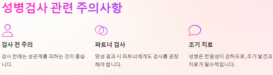 검사 전에는 성관계를 피하는 것이 좋습니다. 또한, 검사 결과가 양성으로 나올 경우, 파트너에게도 검사를 권장해야 합니다. 성병은 전염성이 강하므로, 조기 발견과 치료가 필수적입니다.
