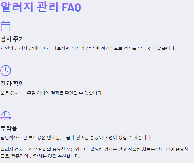 - 개인의 알러지 상태에 따라 다르지만, 의사와 상담 후 정기적으로 검사를 받는 것이 좋습니다.