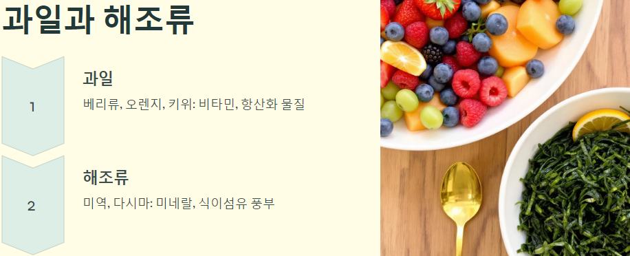 미역, 다시마와 같은 해조류는 혈액순환을 돕는 미네랄과 식이섬유가 풍부합니다. 해조류를 자주 섭취하면 혈액순환에 긍정적인 영향을 미칠 수 있습니다.