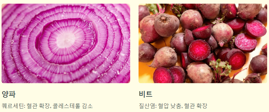 비트는 혈액을 정화하고 혈압을 낮추는 데 도움을 줍니다. 비트에 포함된 질산염은 혈관을 확장시켜 혈액순환을 개선하는 데 기여합니다. 비트를 샐러드나 주스로 섭취하면 좋습니다.