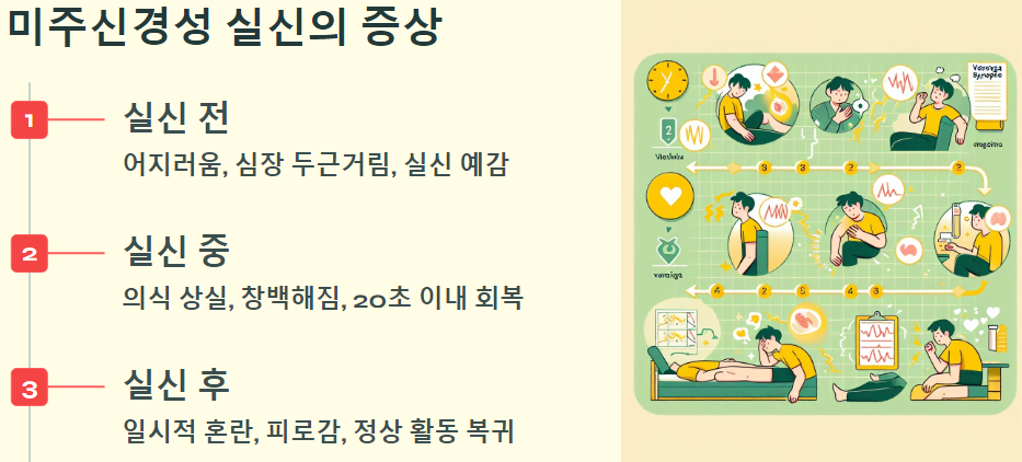 - 실신 후 증상 : 일시적인 혼란과 피로감을 느끼며, 곧 정상적인 활동으로 돌아갈 수 있습니다.