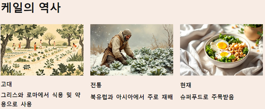 케일은 브라시카 속에 속하는 잎채소로, 주로 북유럽과 아시아에서 재배됩니다. 고대 그리스와 로마 시대부터 재배되어 온 케일은, 그 당시에는 주로 식용뿐만 아니라 약용으로도 사용되었습니다. 최근에는 슈퍼푸드로 알려지며, 다양한 건강 효과로 주목받고 있습니다.