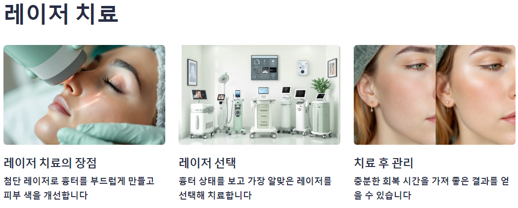 레이저 치료는 비후성 반흔의 표면을 평평하게 만들고 색소 침착을 줄이는 데 효과적입니다. 다양한 종류의 레이저가 사용되며, 치료 후에는 피부가 회복되는 시간이 필요합니다.