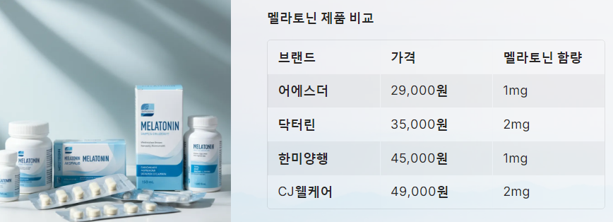 시중에는 다양한 멜라토닌 제품이 나와있습니다. 각각의 제품은 가격, 성분, 멜라토닌 함량이 다르므로 주의 깊게 비교해야 합니다. 아래는 인기 있는 멜라토닌 제품의 비교 표입니다.