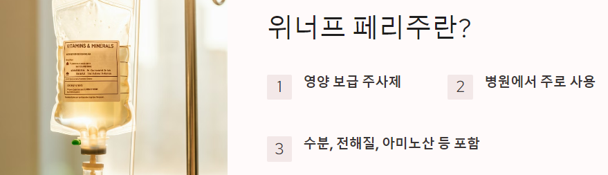 위너프 페리주 영양제 주사 가격 효능 효과 부작용 정보에 대해 자세히 알아보겠습니다. 위너프 페리주는 영양 보급을 위한 주사제로, 특히 경구 또는 위장관 영양 공급이 불가능한 환자들에게 사용됩니다. 이 글에서는 위너프 페리주의 효능, 효과, 주사 형태, 가격, 부작용, 사용 방법 등을 상세히 설명하겠습니다.
