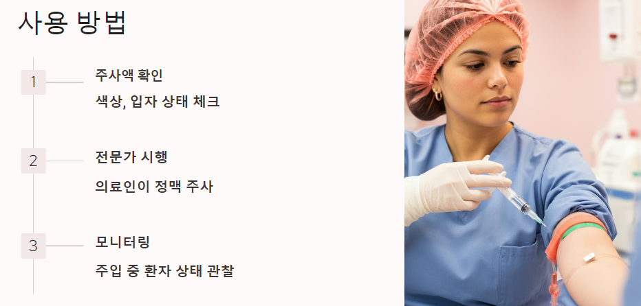 정맥 주사는 반드시 전문 의료인이 시행해야 합니다.