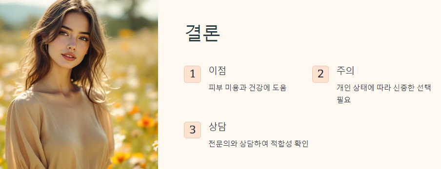 - 성기능 향상 : 남성의 경우 성기능 개선에도 효과가 있을 수 있습니다.