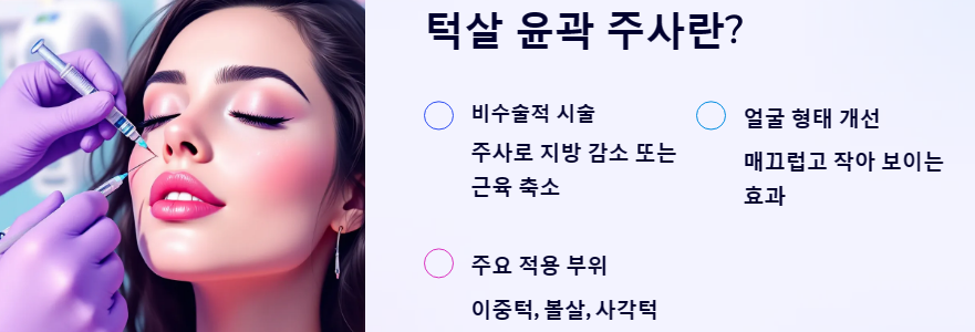 턱살 윤곽 주사에 대해 알아보겠습니다. 요즘 많은 분들이 턱살 윤곽 주사에 관심을 가지고 계신데요, 이 시술이 무엇인지, 어떤 효과가 있는지, 비용은 얼마나 되는지, 부작용은 없는지 등 다양한 정보를 제공해 드리겠습니다.