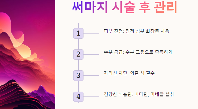 써마지 시술 후에는 다음과 같은 관리를 통해 더 나은 효과를 볼 수 있습니다.