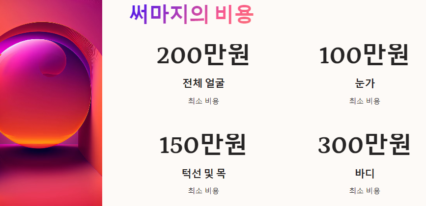 - 전체 얼굴: 약 200만 원에서 400만 원