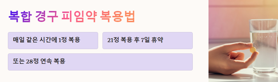 • 21정 복용 후 7일 동안 휴약 기간을 가지거나, 28정 복용 후 바로 다음 팩으로 넘어갑니다.