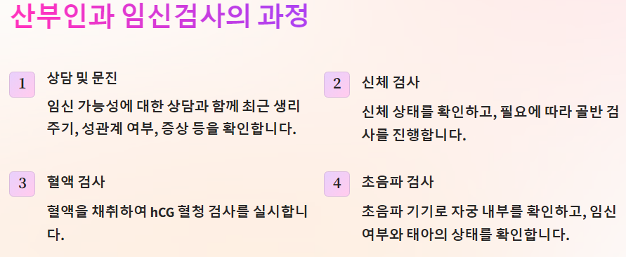 산부인과 임신검사는 다음과 같은 과정으로 진행됩니다.