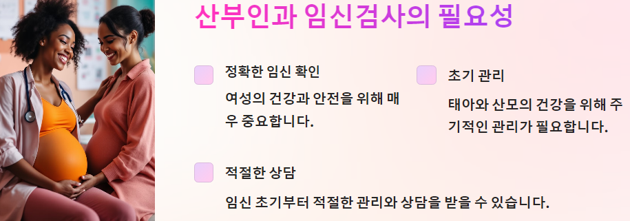 산부인과 임신검사는 임신 여부를 확인하는 가장 정확한 방법입니다. 산부인과 임신검사는 신뢰할 수 있는 결과를 제공하며, 임신 초기의 중요한 정보를 얻을 수 있습니다. 이 글에서는 산부인과 임신검사의 필요성, 종류, 과정, 비용, 시기 및 주의사항에 대해 자세히 알아보겠습니다.
