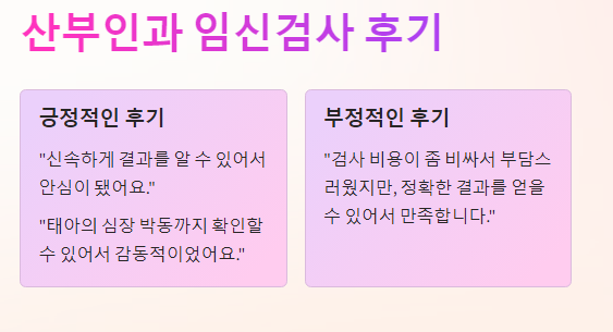 산부인과 임신검사를 받은 많은 여성들은 그 정확성과 신속한 결과에 대해 긍정적인 평가를 하고 있습니다. 특히, 임신 초기부터 적절한 관리와 상담을 받을 수 있어 안심할 수 있다는 점에서 만족도가 높습니다.