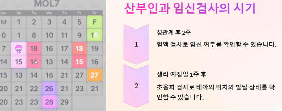 - 생리 예정일 1주 후: 초음파 검사를 통해 태아의 위치와 발달 상태를 확인할 수 있습니다.