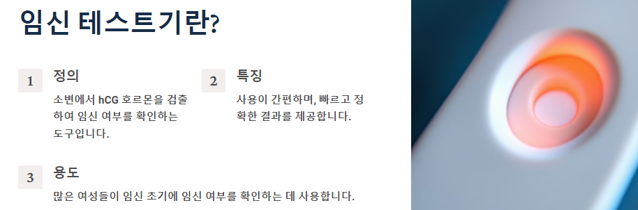 임신 테스트기는 소변에서 인간 융모성 성선 자극 호르몬(hCG)을 검출하여 임신 여부를 확인하는 도구입니다. hCG는 임신 초기부터 태반에서 분비되는 호르몬으로, 임신 테스트기를 통해 이 호르몬의 존재를 확인할 수 있습니다. 임신 테스트기는 사용이 간편하며, 빠르고 정확한 결과를 제공하여 많은 여성들이 임신 여부를 확인하는 데 사용합니다.