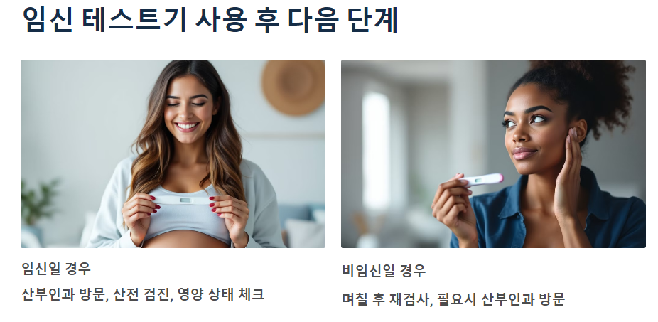 임신 테스트기를 사용한 후, 결과에 따라 다음과 같은 단계를 진행할 수 있습니다.