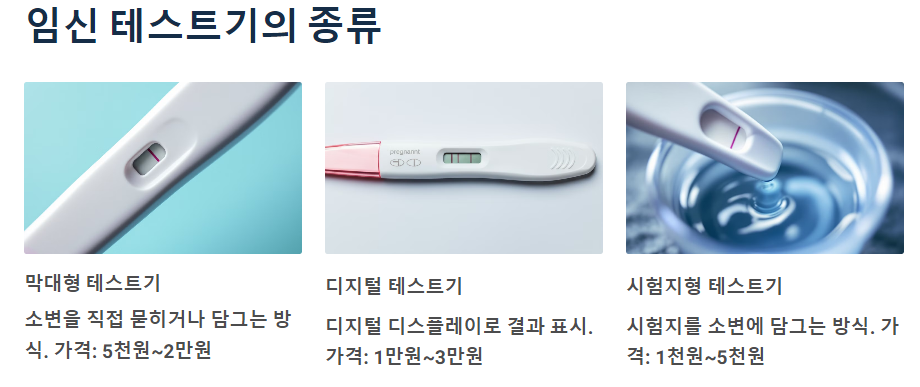 임신 테스트기는 주로 다음과 같은 종류로 나눌 수 있습니다.
