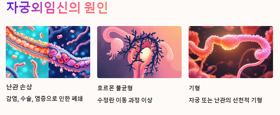 자궁외임신의 원인은 다양하며, 다음과 같은 요인들이 자궁외임신을 유발할 수 있습니다: