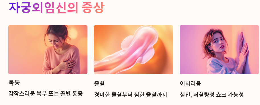 - 임신 초기 증상: 메스꺼움, 구토, 유방 압통 등 임신 초기 증상이 나타날 수 있습니다. 그러나 자궁외임신의 경우 이러한 증상이 자궁외에서 발생하기 때문에 임신 초기 증상과 구분이 필요합니다.