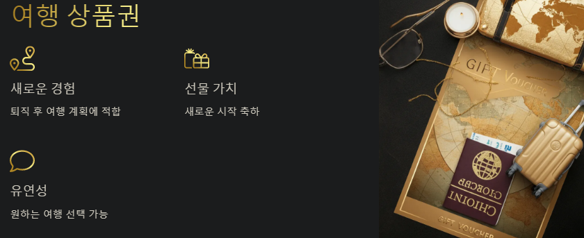 퇴직 후 여행을 계획하는 분들에게는 여행 상품권이 좋은 선택입니다. 새로운 경험을 통해 새로운 시작을 축하할 수 있습니다.