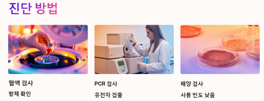 혈액 검사를 통해 마이코플라즈마에 대한 항체를 확인합니다. 이 방법은 감염 여부를 빠르게 파악하는 데 유용합니다.