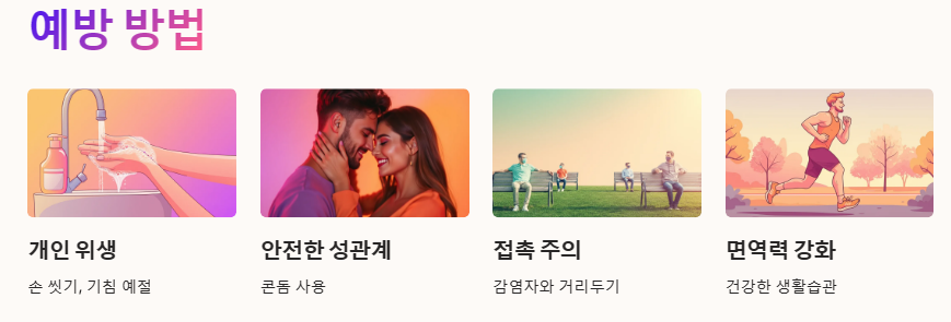 • 면역력 강화: 건강한 식습관과 운동을 통해 면역력을 높이는 것이 좋습니다.