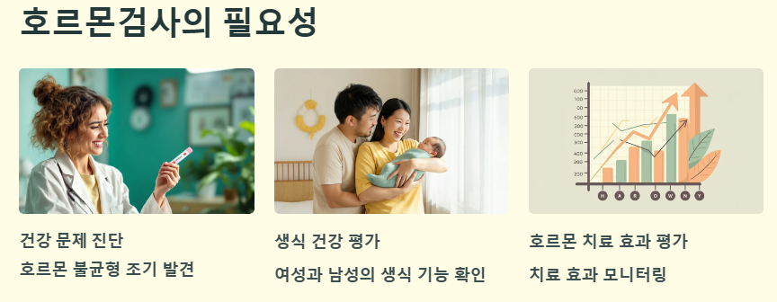 호르몬검사는 건강 상태를 평가하고, 호르몬 불균형을 조기에 발견하여 적절한 치료를 받을 수 있도록 도와줍니다. 정기적인 호르몬검사는 특히 다음과 같은 경우에 중요합니다: