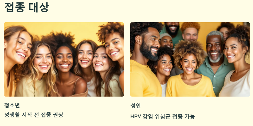 가다실9가는 남성과 여성 모두에게 권장되며, 특히 성생활을 시작하기 전인 청소년기에 접종하는 것이 효과적입니다. 이는 HPV 감염을 예방하고, HPV 관련 질병으로부터 보호받을 수 있도록 합니다. 성인도 접종이 가능하며, 특히 HPV 감염 위험이 높은 사람들에게 권장됩니다.