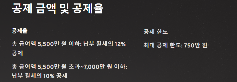 • 총 급여액 5,500만 원 이하: 납부 월세의 12% 공제