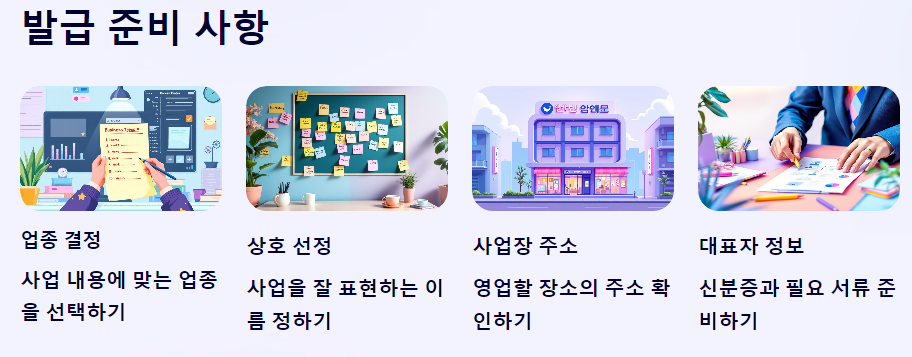 사업자 등록을 진행하기 전에, 우선 사업을 시작하려는 사람은 다음과 같은 기본적인 사항을 준비해야 합니다: