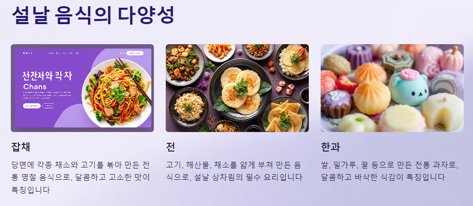 설날에는 떡국 외에도 다양한 전통 음식을 즐깁니다. 설날 음식은 오랜 역사와 전통을 가지고 있으며, 각 지역마다 독특한 요리들이 있습니다.