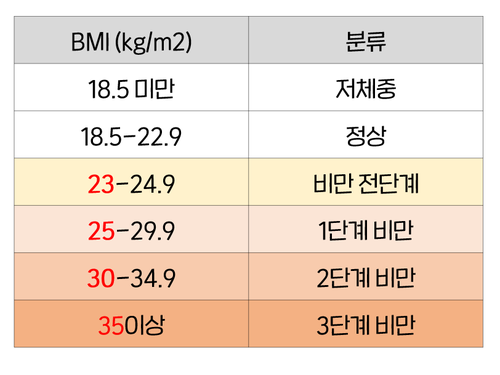 • 25 ~ 29.9: 비만 전단계