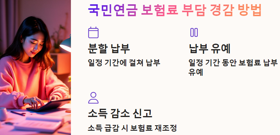 국민연금 보험료가 부담스러울 경우 몇 가지 방법을 통해 경감을 받을 수 있습니다.