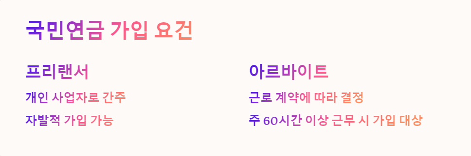 1. 프리랜서와 아르바이트의 국민연금 가입 요건