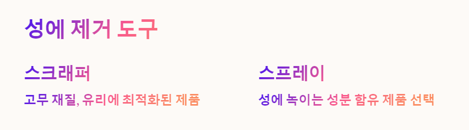 성에는 겨울철 자동차 운전자가 가장 많이 부딪히는 문제 중 하나입니다. 하지만 몇 가지 팁과 도구를 사용하면 쉽게 해결할 수 있습니다. 특히, 사전에 예방조치를 취하는 것이 가장 효과적인 방법이라는 점을 기억해 주세요.