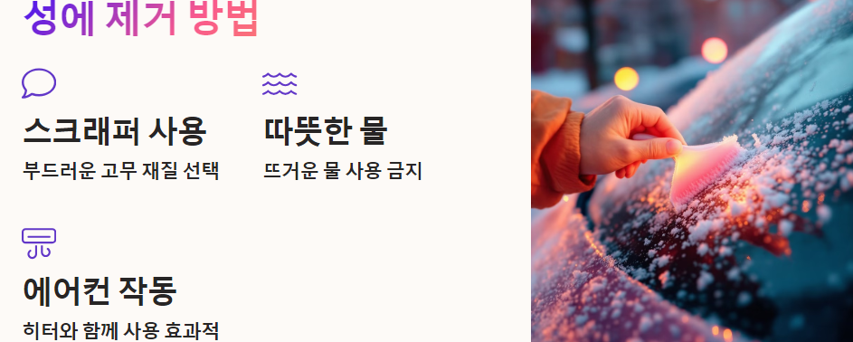 이제 겨울철에도 안전한 운전이 가능할 것입니다. 성에로 인한 불편함을 줄이고, 쾌적한 드라이브를 즐기시길 바랍니다!