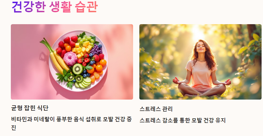 건강한 머리카락을 유지하려면 건강한 식습관도 중요합니다. 비타민과 미네랄이 풍부한 음식을 섭취하여 머리카락의 건강을 유지합니다.
