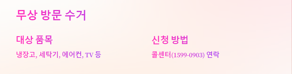 - 무상 방문 수거 대상 품목 확인: 냉장고, 세탁기, 에어컨, TV 등 주요 가전제품이 대상입니다.