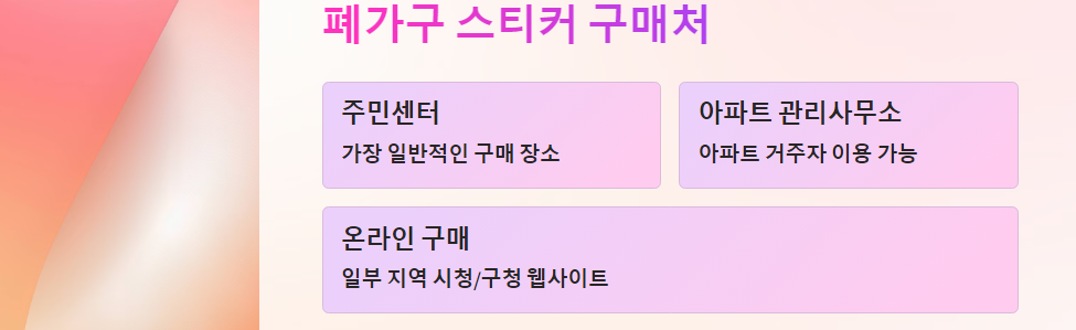 - 주민센터: 가장 일반적인 구매 장소로, 가까운 주민센터를 방문하여 스티커를 구매할 수 있습니다.