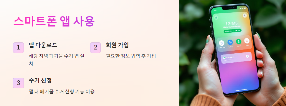 - 일부 지역에서는 스마트폰 앱을 통해 폐기물 수거 신청이 가능합니다.