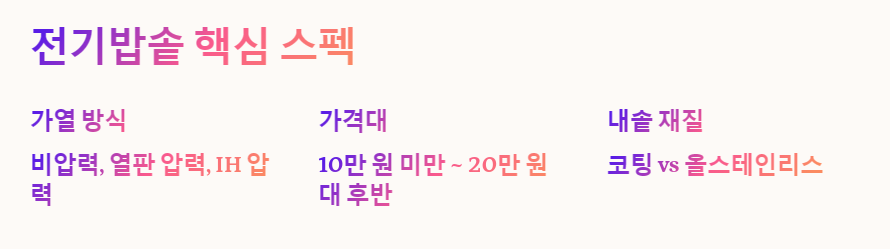 3. 🔍 전기밥솥의 핵심 스펙 정리
