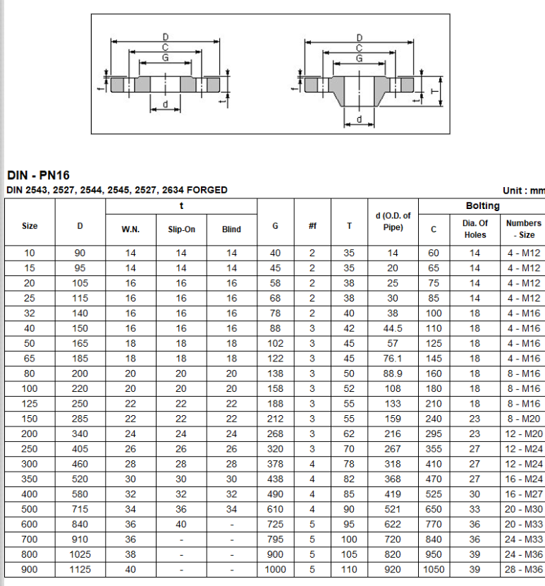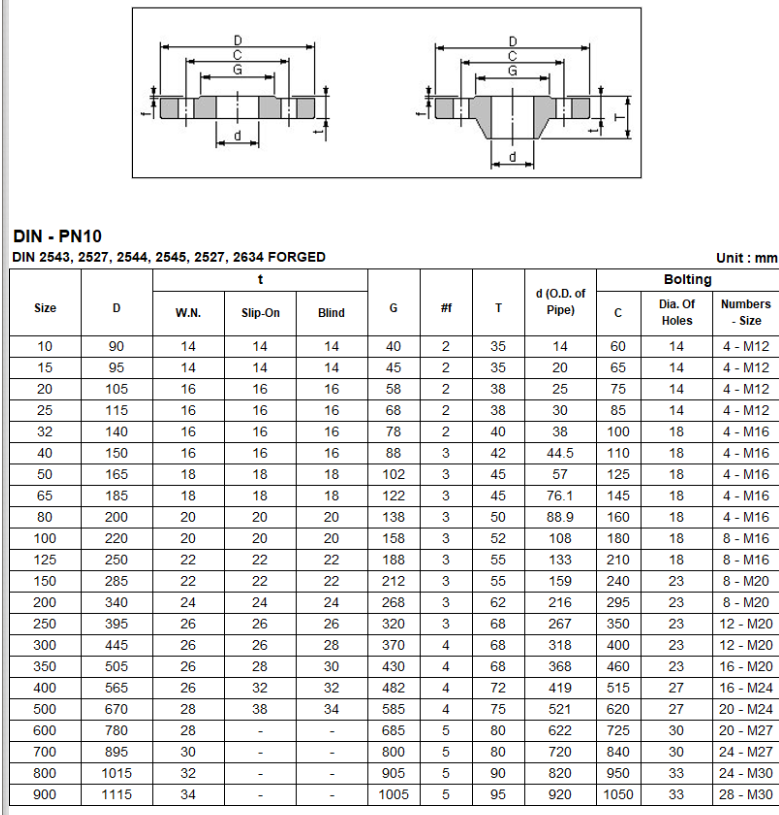 DIN 후렌지는 다양한 규격으로 제공되며, 일반적으로 사용되는 규격은 다음과 같습니다: