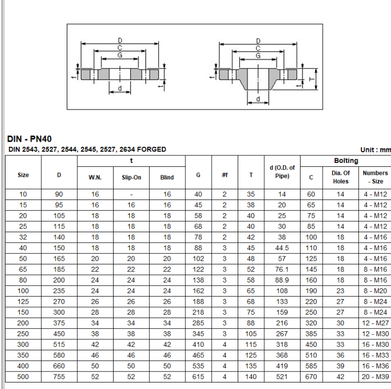 - DIN PN40 : 최대 40바의 압력을 견딜 수 있는 후렌지