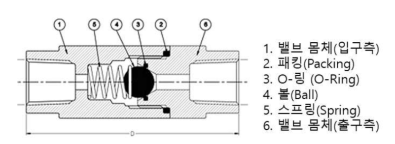 • 밸브 본체 : 체크밸브의 외부 구조로, 유체가 흐르는 경로를 형성합니다.