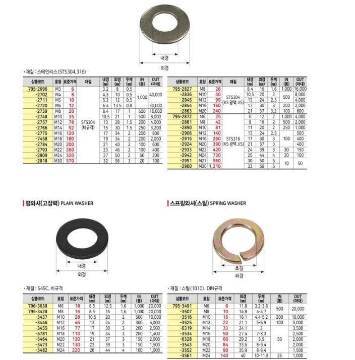 와셔의 규격과 스펙