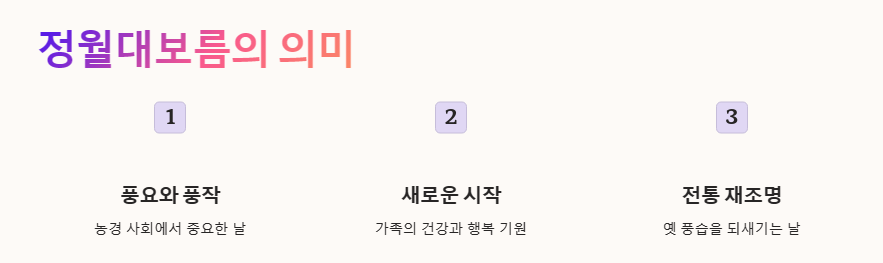 2025년 정월대보름 날짜는 가족과 이웃이 함께 모여 전통을 되새기며 즐거운 시간을 보내는 날입니다. 현대에는 도시 생활로 인해 모든 전통을 지키기는 어렵지만, 가족과 함께 오곡밥을 먹고 부럼을 깨며 건강과 행복을 기원하는 작은 행사들을 통해 정월대보름의 의미를 되새길 수 있습니다. 또한, 보름달이 뜨는 밤에는 잠시 하늘을 보며 소원을 빌어보는 것도 특별한 경험이 될 것입니다.